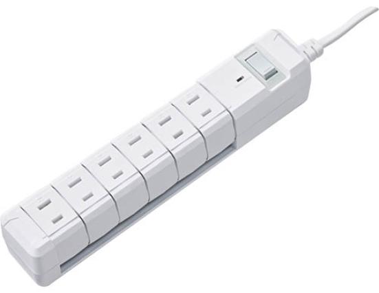 電源タップ 6個口 回転式 2P 2m コンセントタップ ホワイト コンパクト